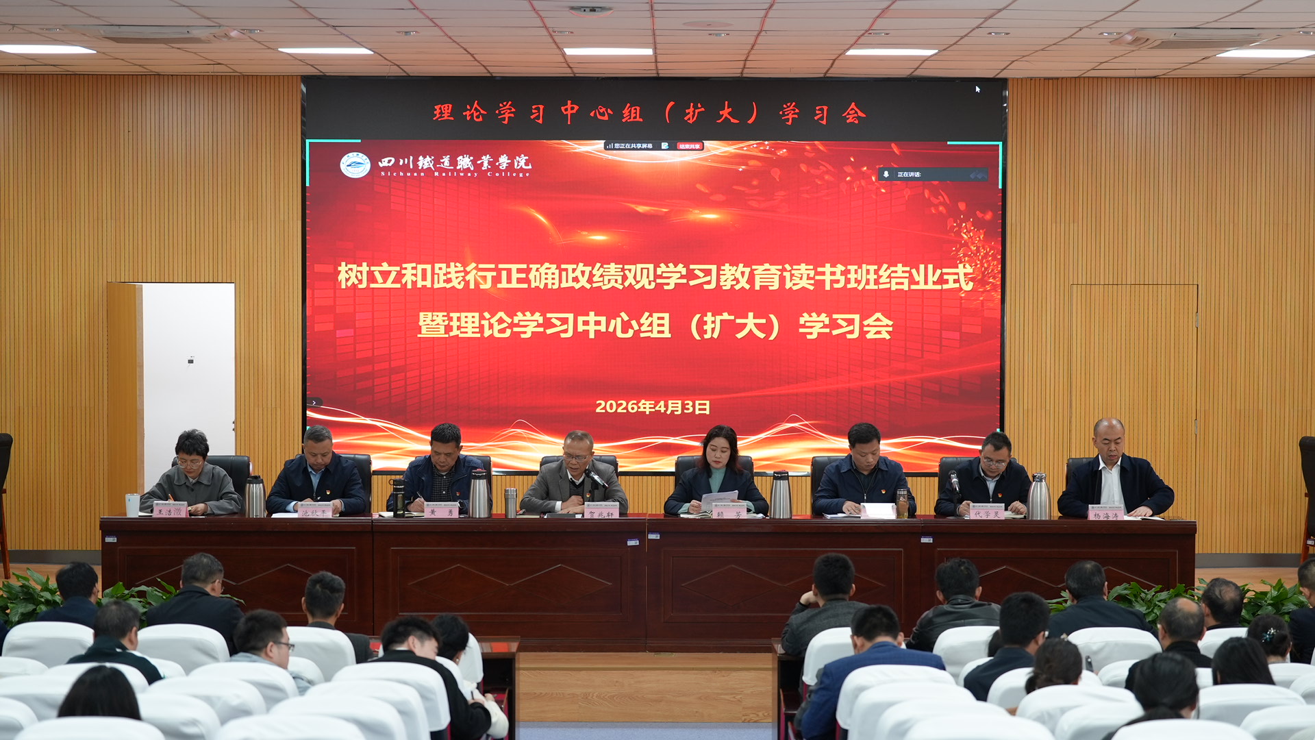 读书班采用个人自学、专题辅导、集中研讨等方式进行,特邀四川省委党校许彦教授作专题辅导。学习期间,全体学员原原本本研读权威材料,深刻领会“政绩为谁而树、树什么样的政绩、靠什么树政绩”的核心要义。 读书班期间,党委班子成员带头交流研讨,结合分管领域与工作实际,深谈学习感悟、细查思想差距、检视政绩偏差、明确整改方向。大家一致表示,通过读书班集中学习,对树立和践行正确政绩观的内涵要义、实践要求与时代价值有了更加清醒的认识,将进一步深学细悟,切实把学习成果转化为思想升华、能力提升与工作实效,以正确政绩观推动学校事业高质量发展。 贺兆轩在结业讲话中强调,要聚焦“关键少数”,进一步加强干部队伍建设;要聚焦民生福祉,进一步主动作为解决师生急难愁盼;要聚焦协同联动,进一步增强工作合力;要聚焦斗争精神,进一步推进全面从严治党;要聚焦知行合一,认认真真、扎扎实实推进树立和践行正确政绩观学习教育取得实效。 贺兆轩要求,要始终牢记为党育人、为国育才使命,扎实开展树立和践行正确政绩观学习教育,多做惠师生、促发展的实事,以功成不必在我的境界和功成必定有我的担当,团结带领全体师生奋力推动学校事业高质量发展,为培养高素质技能人才、服务轨道交通行业产业和地方经济社会发展作出新的更大贡献。
