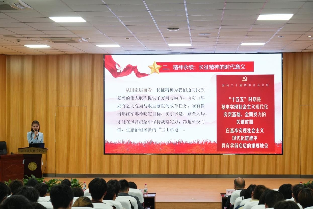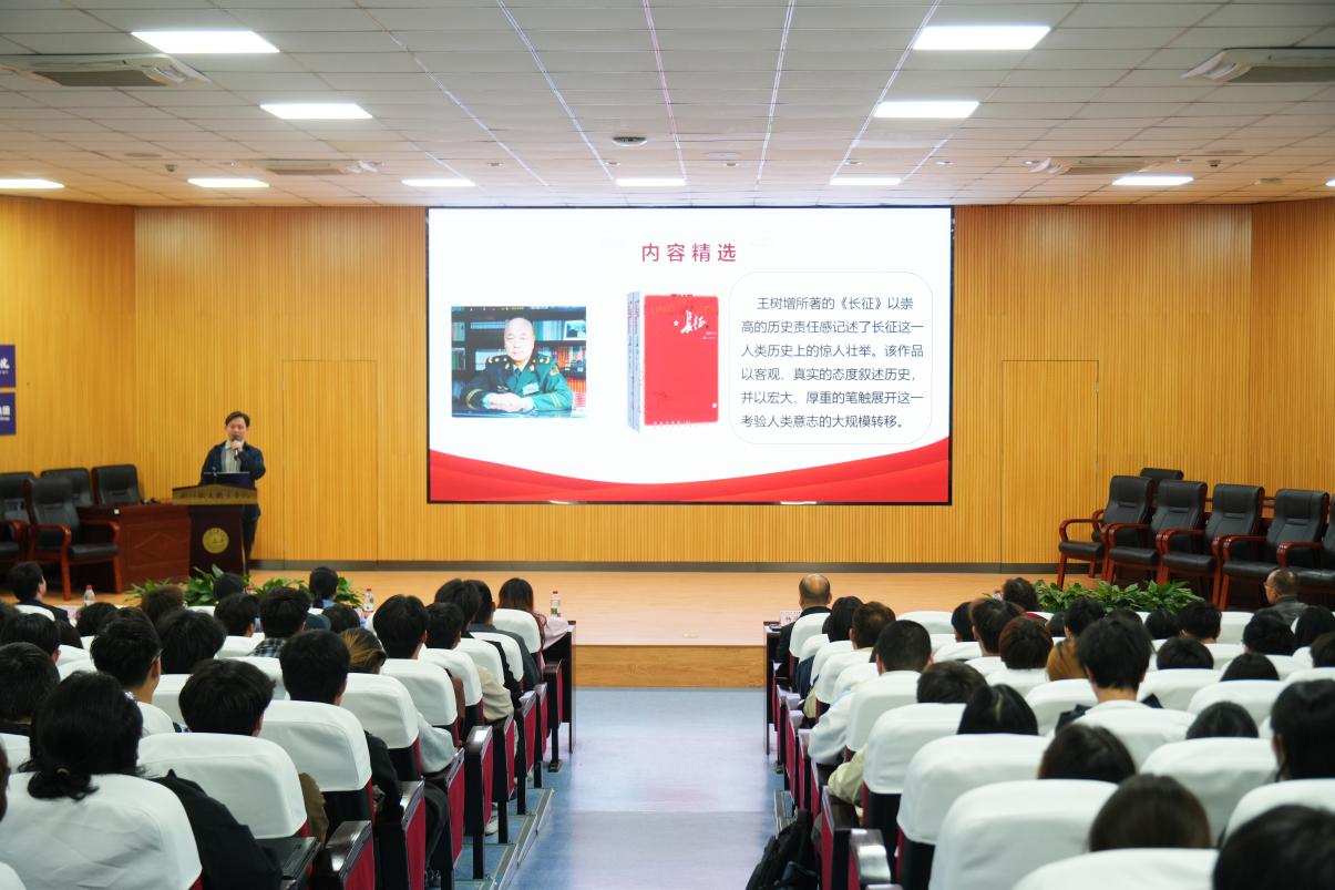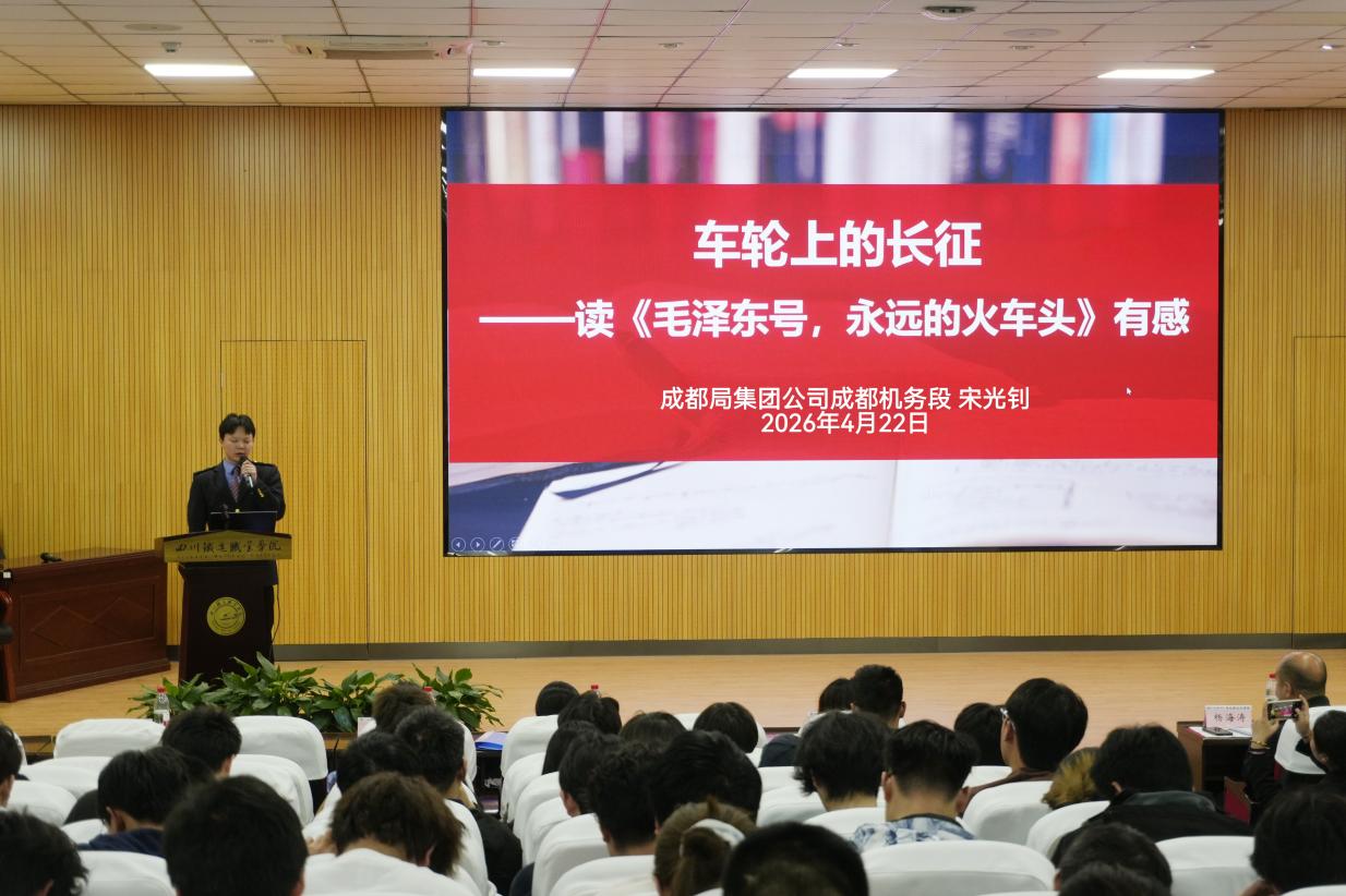 4月22日,在第31个“世界读书日”来临之际,近300名师生齐聚学校学术报告厅,14名师生、企业代表同台分享。思政课教师何振东以《长征》剖析长征精神时代价值;成铁党校陈昱廷借《地球的红飘带》重温红色征程;成都机务段宋光钊结合《毛泽东号,永远的火车头》讲述“车轮上的长征故事”;成都动车段黄小轩分享《中国速度》,展现高铁从追赶到领跑的历程;学生代表陈祉月通过《一个人的长征》抒发传承之志。
