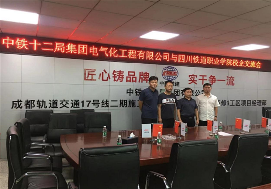 中铁十二局集团电气化工程有限公司成都地铁5号线机电安装及装修项目部负责人王成君对张果书记一行人进行了接待,并开展交流座谈,会上王成君经理对张果书记一行来访调研表示热烈欢迎,与张书记就企业用工模式、实习、合作意向及科研合作等问题进行了深入交流;对产业工人需求大和毕业生就业难的问题、目前毕业生就业观和职业素养等现状进行热烈的探讨;交流会上王成君经理明确表示,将积极为学院牵线搭桥,力所能及地通过公司青藏、川藏铁路项目及铁路养护公司帮助学院提供就业实习岗位、加强科研合作。