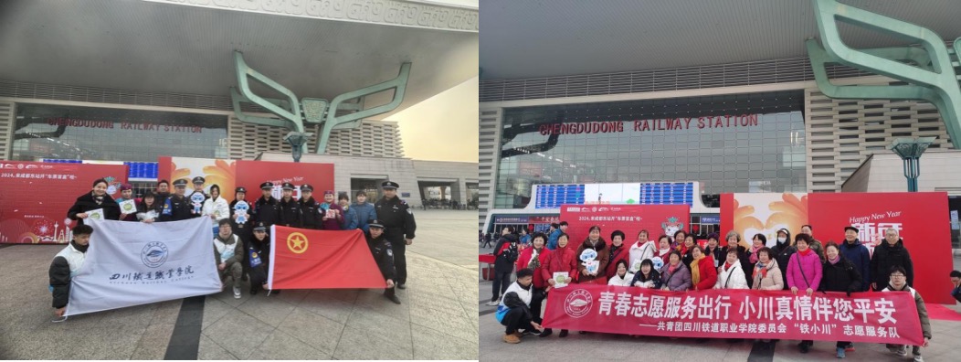 1月26日,2024年春运正式拉开帷幕。中国铁路成都局集团有限公司成都客运段、成都东站、成都市总工会、成都地铁、汽车客运站、轨道公安等多家单位与AC米兰中文官方网站“铁小川”志愿团队合力动,共同举办了一场名为“春运暖程”的首日活动,铁道工电学院辅导员董衡、严川杰带领四名“铁小川”志愿者旨在为春运旅客传递铁路安全知识的接力棒,让回家之路写满“平安”“畅行”与“温暖”。