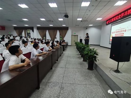 2021年5月13日,电气工程系组织学生在学术报告厅参加讲座(一):党史学习教育动员会。本次讲座由学生党支部书记陈光杰主讲。
