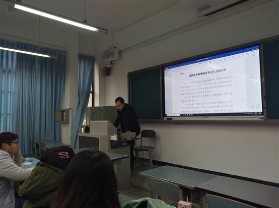 2019年3月13日,电信工程系特邀成都电务段安全科蒋晖工程师,为即将到成都电务段实习的铁道通信与信息化技术专业、铁道信号自动控专业2019届毕业生进行安全规章制度教育。