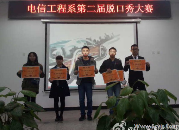 12月8日,电信工程系在学术报告厅举办了第二届脱口秀大赛。出席此次大赛的嘉宾有:我系辅导员刘小杨、程明惠老师、我系团总支、学生会主席团成员及各班代表。