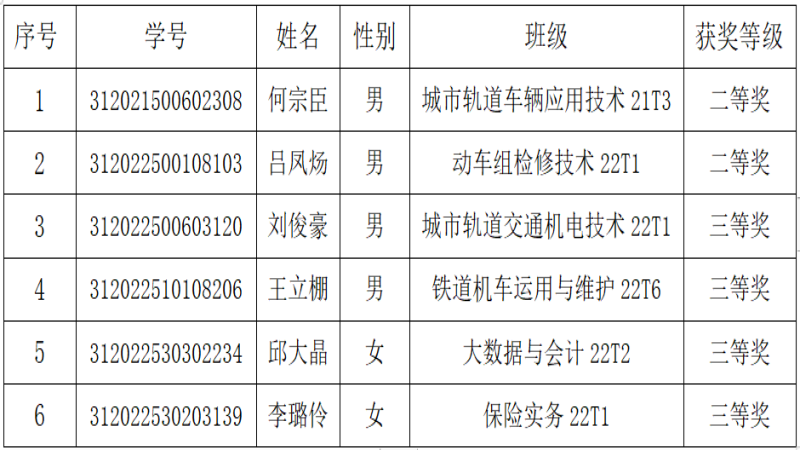 来自全校的80余名学生参加了本次竞赛,经过两个小时的奋笔疾书,城市轨道车辆应用技术21T3何宗臣等6名同学成绩突出,分获二三等奖。