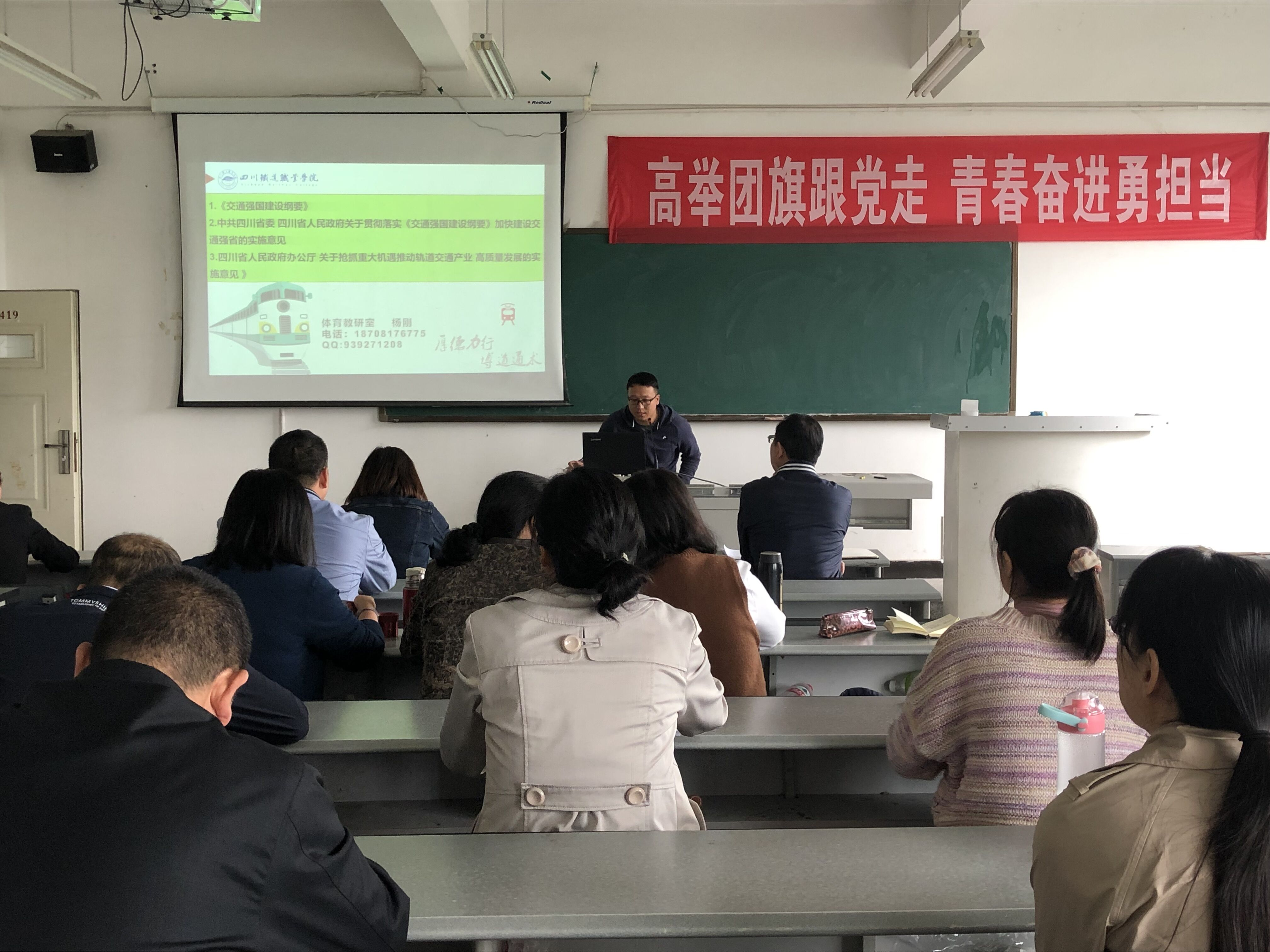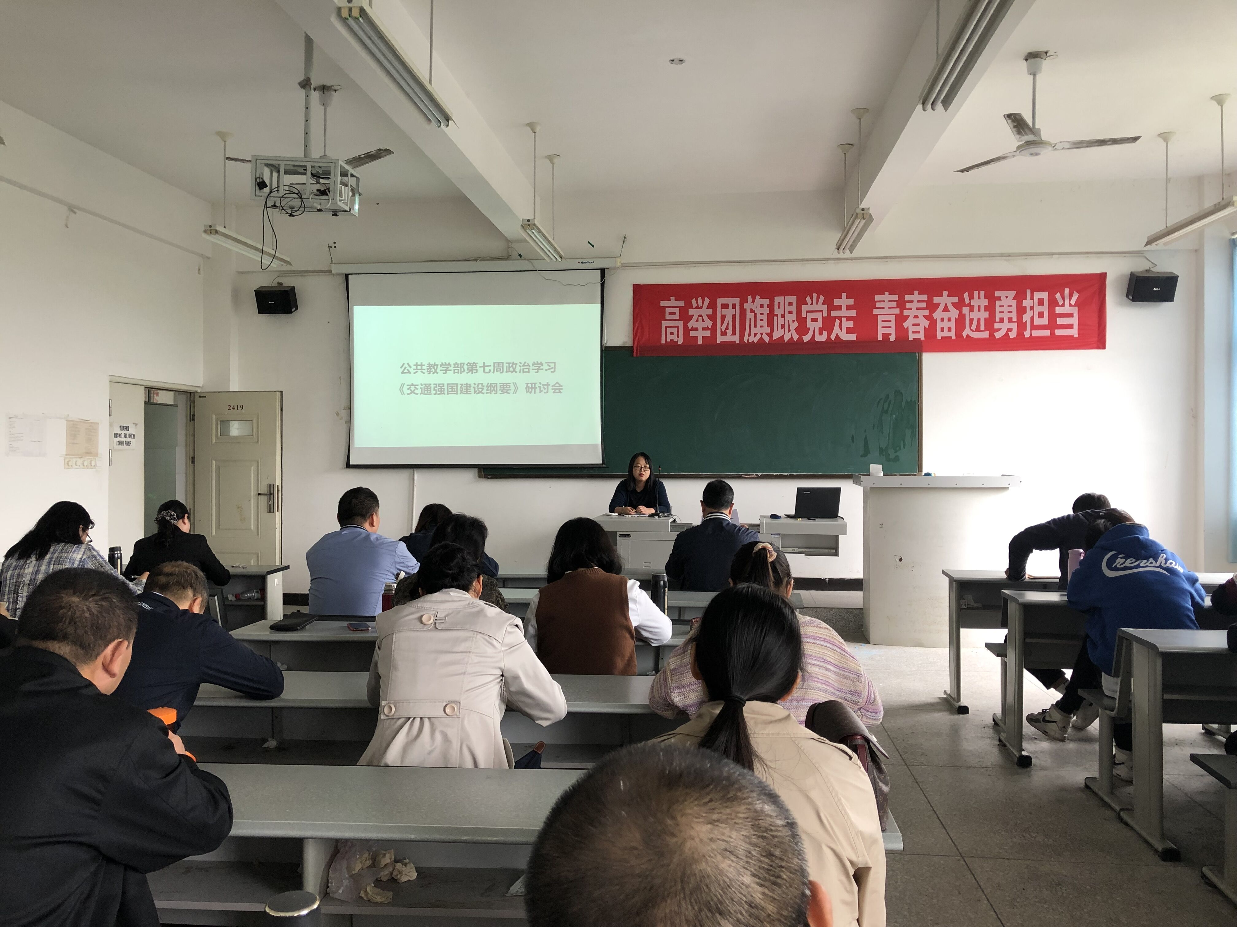 2021年10月11日下午,公共教学部在2419召开第七周政治学习。公教部副主任杨伦军组织部门老师学习了《中共四川省委四川省人民政府关于贯彻落实<交通强国建设纲要>加强建设交通强省的实施意见》《中共中央国务院印发<交通强国建设纲要》《四川省人民政府办公厅关于抢重大机遇推动轨道交通产业高质量发展的实施意见》等文件,部门全体教师参与了本次学习研讨会。