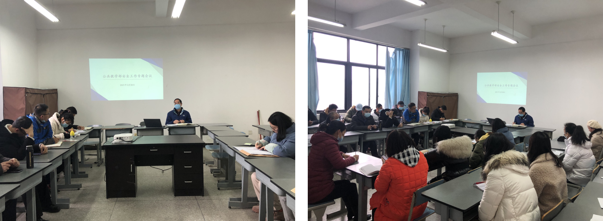 为认真学习贯彻党的十九届六中全会精神,贯彻落实习近平总书记关于安全生产的重要指示批示,统筹落实好学校安全稳定、疫情防控等工作,2021年12月30日下午,公共教学部在2501召开安全稳定工作专题会议。公教部副主任杨伦军组织教师学习《今冬明春火灾防控工作方案》《元旦、春节和寒假期间疫情防控工作方案》《四川省新冠肺炎疫情防控工作指南(第五版)》等文件,安排部署岁末年初安全防范工作。