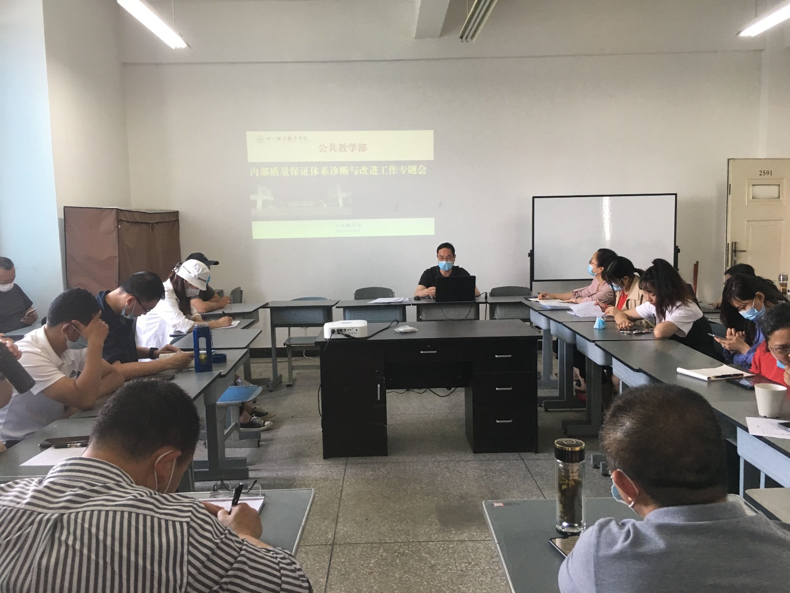 在此次会议召开前,公教部还于4月19日还召开了公教部诊改工作小组会议,党支部书记刘媛、支部委员、全体教研室主任参加了会议,此次会议成立了由部门负责人为组长,支部委员、教研室主任为成员的内部质量诊改工作小组。此次会议主要明确了小组成员职责,学习了相关文件,对后续相关工作做了提前部署。