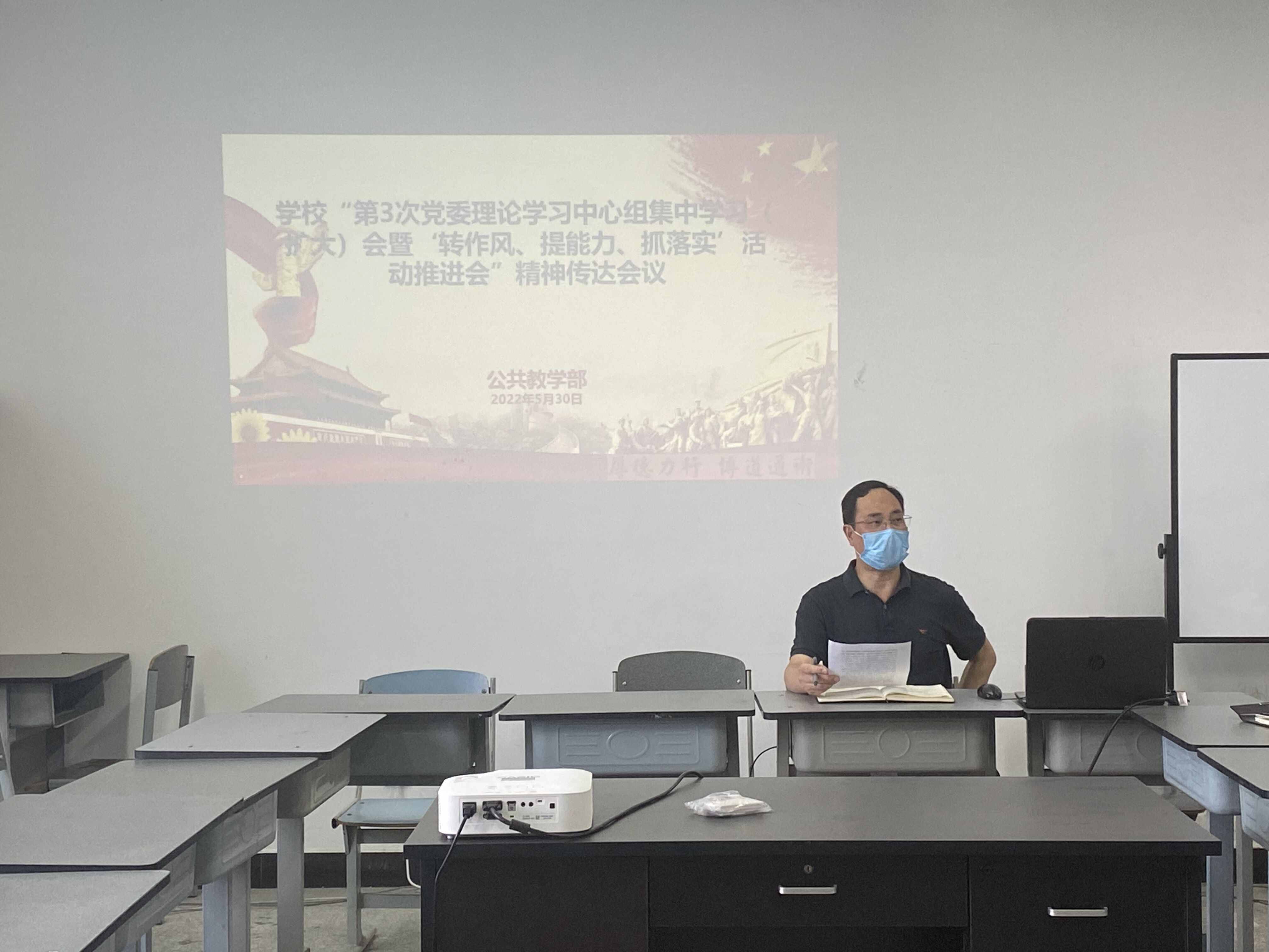5月30日,公共教学部副主任杨伦军于2501教室组织部门开展政治理论学习,公教部全体老师参与了本次会议。