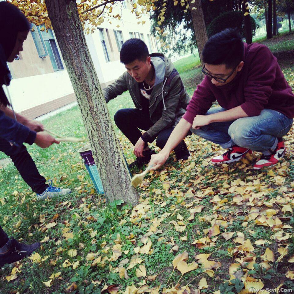 银杏树具有极高的科学、经济、药物和生态利用价值,春日的新绿秋日的金黄,给了我们很多的惊喜,给了校园许多的美丽。但她也十分脆弱,于是在冬日的严寒中,机车车辆系党支部基层小组40余名入党积极分子决定,为银杏树们穿上一件温暖的外衣,感恩银杏树一年四季带给我们的美丽,感恩给了我们美丽校园的学校。通过前期网上搜索、请教林木专家,大家明确了涂刷所使用的材料以及配比,并购买了相应涂料。活动当天,由组织者讲解明确涂刷的正确方法与规定高度,随后入党积极分子便开始分发工具,分组对银杏树进行涂刷。经过同学们的共同努力,于当日下午5点半完成了指定区域银杏树的涂刷,大树们整整齐齐的穿上了新衣。