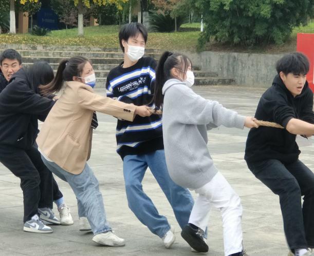 两个学院共派出16支新生参赛队伍,分8组进行了比赛。哨声响起,参赛队员们紧握长绳,卯足了劲拼命住后拉,观赛的同学自发组成啦啦队为比赛队员呐喊加油,哨子声、呐喊声此起彼伏。比赛过程中,各班参赛队员斗志昂扬、团结一心、努力拼搏。尤其是在胜负难分的时刻,同学们毫不退却,咬紧牙关,坚持到底。现场气氛热烈,同学热情高涨,呐喊不断,将整个比赛推向高潮。