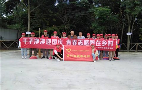 2019年9月21日,为响应省委推进志愿服务制度化常态话部署,弘扬“奉献、友爱、互助、进步”的志愿精神,传播向上向善正能量,会计金融系青年志愿者分会在黄烟村开展了“干干净净迎国庆,青春志愿靓在乡村”志愿服务活动。