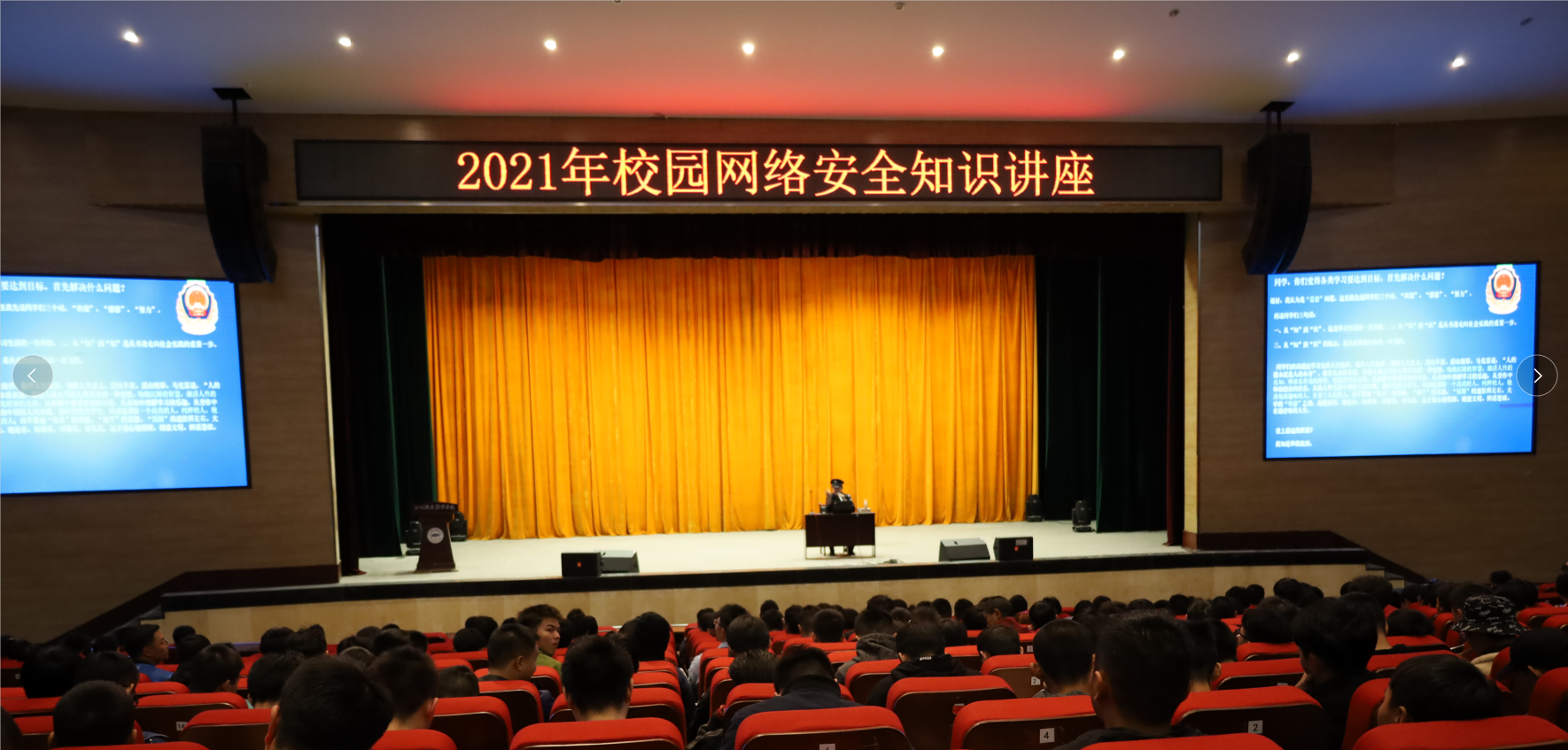 为贯彻落实中央、省委及教育厅相关部署要求,加强网络安全教育宣传,营造安全、健康、文明、和谐的网络校园,10月14日下午,“2021年校园网络安全知识讲座”在学校大礼堂成功开展。此次讲座由图书信息中心组织,郫都区公安分局所长何鹏主讲。