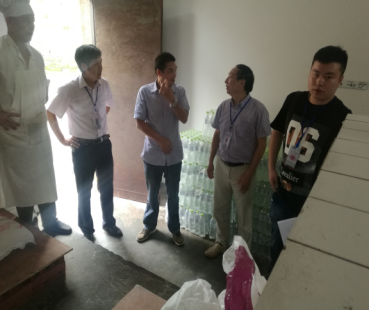 9月20日上午,内江市经济开发区壕子口街道办事处刘主任、食药办严所长一行三人到我院内江校区,对学校食堂食品安全生产经营情况进行检查。学院内江校区后勤处负责人、食品安全监管员陪同检查。刘主任一行检查了经营资质、环境卫生、规范操作、原材料堆放、规范留样、索证索票、进出货台账、原材料验收、餐具消毒等30个项目,并对食堂食品安全生产经营进行了指导。检查组充分肯定了食堂食品安全生产工作,向学校出具了食堂食品安全生产经营监督检查合格文书。