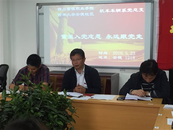 5月23日,机车车辆系党总支为推动“两学一做”学习教育的深入开展,认真策划,精心准备,开展了一次别开生面的“重温入党志愿,永远跟党走”的专题学习教育.系党总支书记王文杰同志主持学习,学院党委书记李青锋同志以普通党员身份与全体党员共同学习。